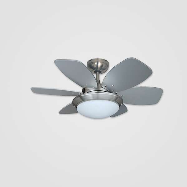 30″ Modern Ceiling Fan with 6 blades silver/wengue palm ends disk light.