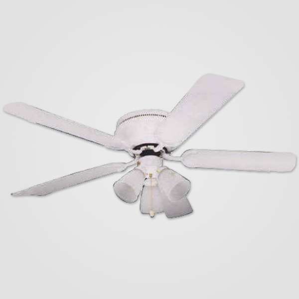 52″ Traditional Ceiling Fan with 5 blades reversible oval ends and three shades light flush mount.