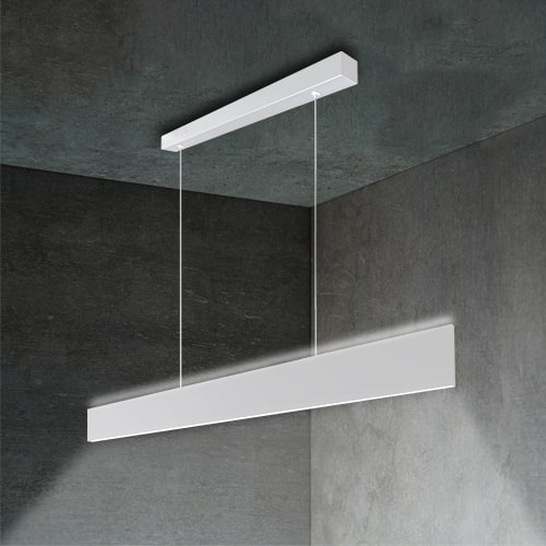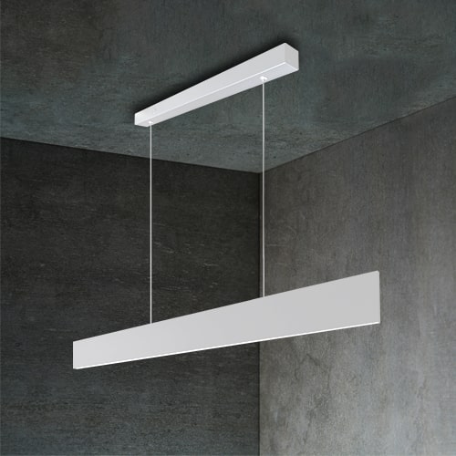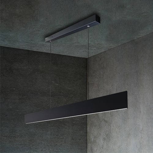 The VERGE™ linear pendant luminaire combines an ultramodern aesthetic with the latest in thin LED technology and design, producing direct/indirect illumination from a visually stunning 0.3” light blade. Two adjustable mounting cables also provide power to the luminaire, eliminating the need for an unsightly third wire. This striking statement piece is available in two production sizes of 40” and 60” and eight different color finishes to complement a range of residential and commercial spaces.